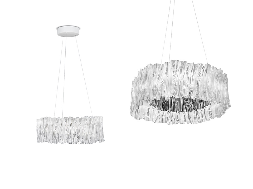 Marc Sadler explora as infinitas possibilidades dos tecnopolímeros da Slamp com Accordèon, evocando a imagem de um tecido plissado ou do fole de um acordeão. A coleção é um marco certeiro da nova narrativa contemporânea: design, moda, técnica artesanal e tecnologia em permanente interação. Apresentamo-vos a versão suspensa deste candeeiro magnifico.