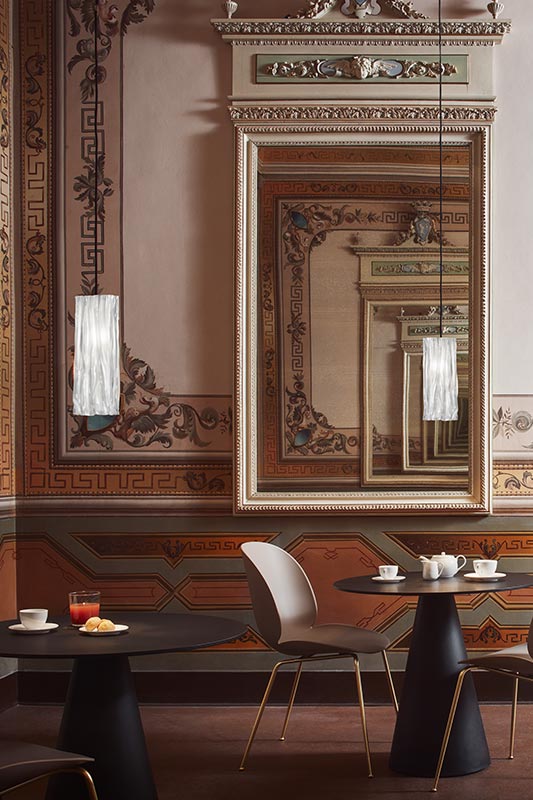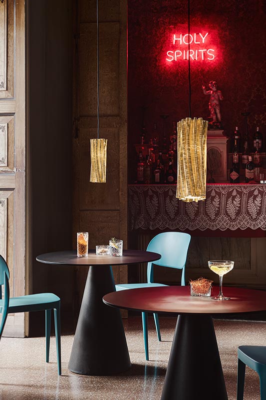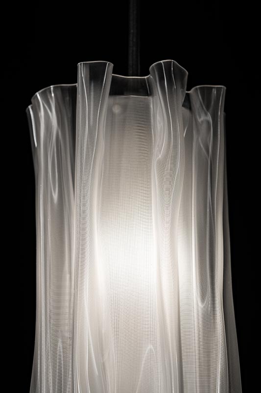 Marc Sadler explora as infinitas possibilidades dos tecnopolímeros da Slamp com Accordèon, evocando a imagem de um tecido plissado ou do fole de um acordeão. A coleção é um marco certeiro da nova narrativa contemporânea: design, moda, técnica artesanal e tecnologia em permanente interação.