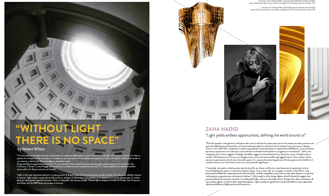 Uma visão mágica de Zaha Hadid com o seu traço único de linhas direitas e uniformes. Iluminar é uma arte e esta visão é para nós a maior expressão em termos estéticos que conhecemos.