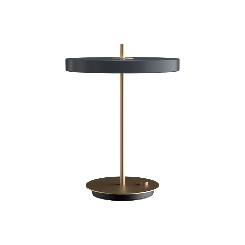 Um candeeiro de mesa elegante, com linhas direitas e funcional. Possui um sistema integrado de regulação da intensidade de luz e uma porta USB que lhe permite carregar os seus principais equipamentos móveis.