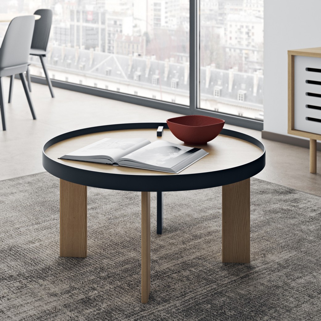 Uma mesa com um traço distinto e elegante: surpreendente e intemporal. Um elemento único no seu projeto de decoração em tons sóbrios e materiais neutros. Em Carvalho/Preto puro.
