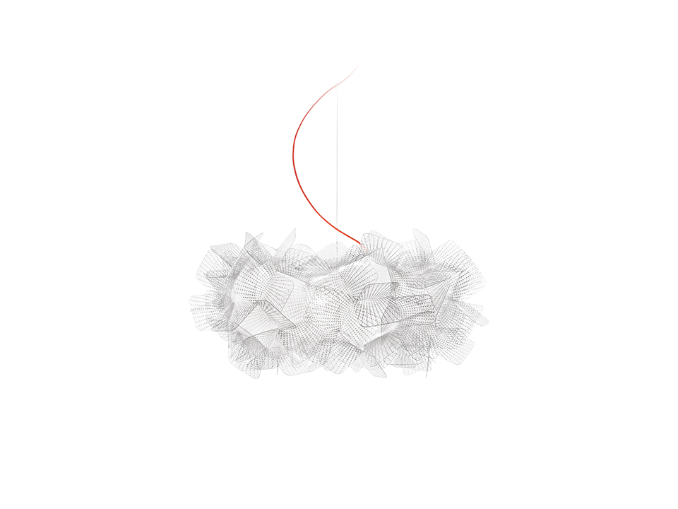 Versões: Suspenso (78cm e 53cm), tecto (78cm, 53cm e 32cm) e aplique (32cm). Disponível com cabo vermelho ou transparente. Indique-nos a sua preferência.
