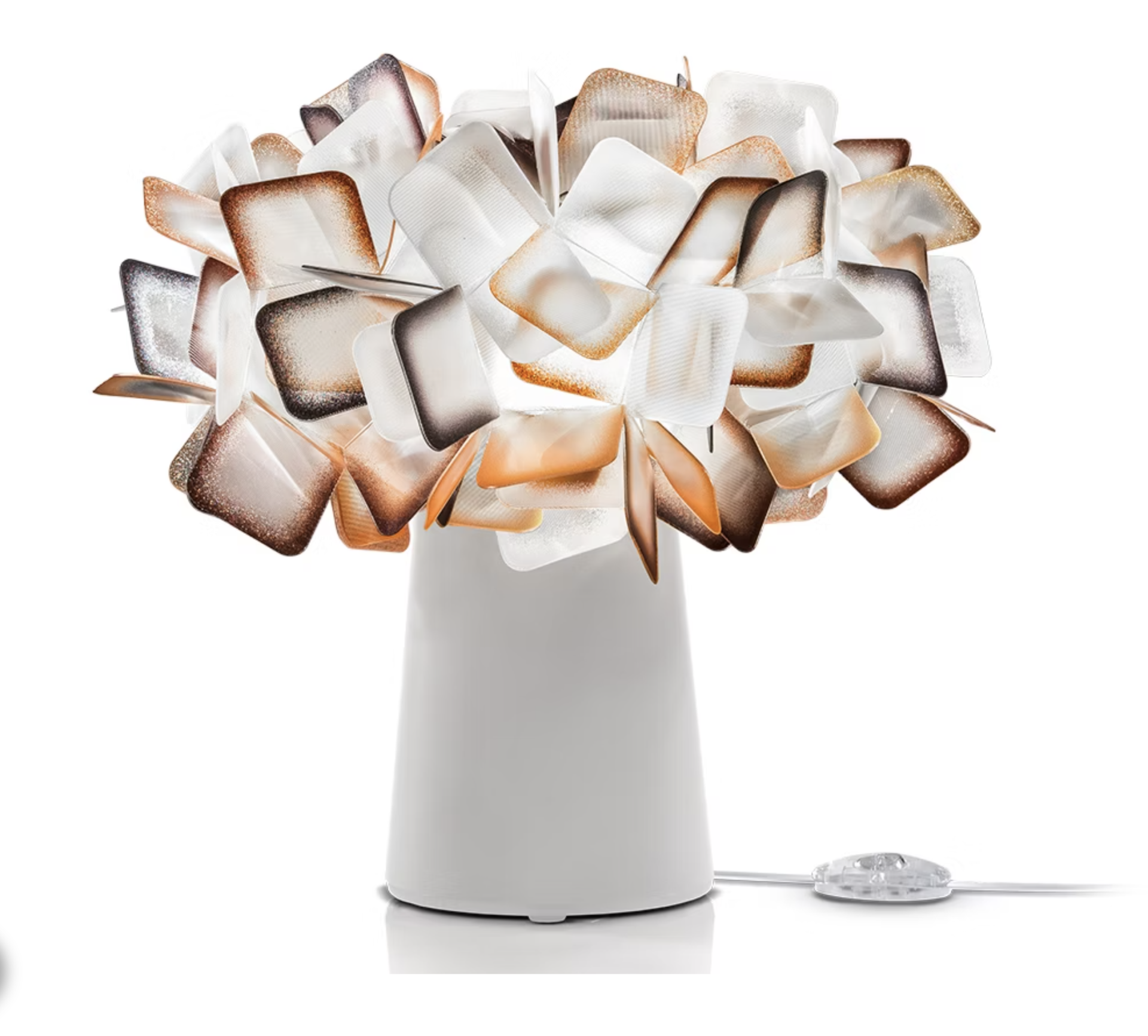 O CLIZIA é inspirado na Itália renascentista. Este candeeiro de mesa passou a entrar nas nossas vidas diárias e temos imensa dificuldade em comentar qual o nosso preferido. Um objecto feito à mão com 230 componentes em LENTIFLEX, tonalidades marcantes e um mundo encantado sem fim.