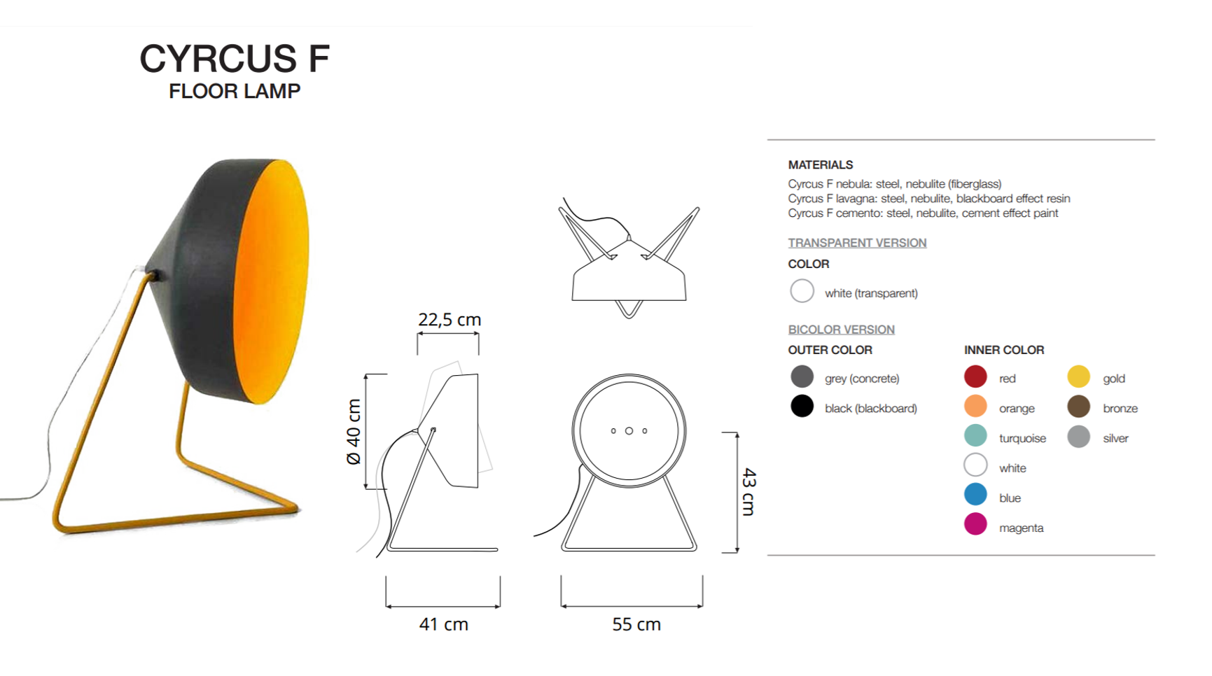 Cor interior: Vermelho | Laranja | Turquesa | Branco Azul | Magente | Dourado | Bronze | Silver