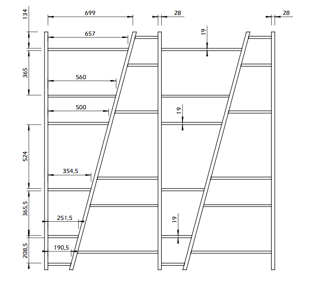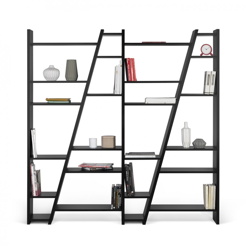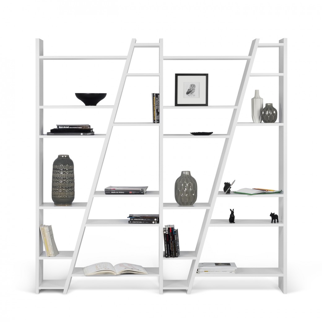 Uma estante diagonal com formato original para espaços irreverentes. Ideal no seu projeto de interiores e decoração da sua casa.