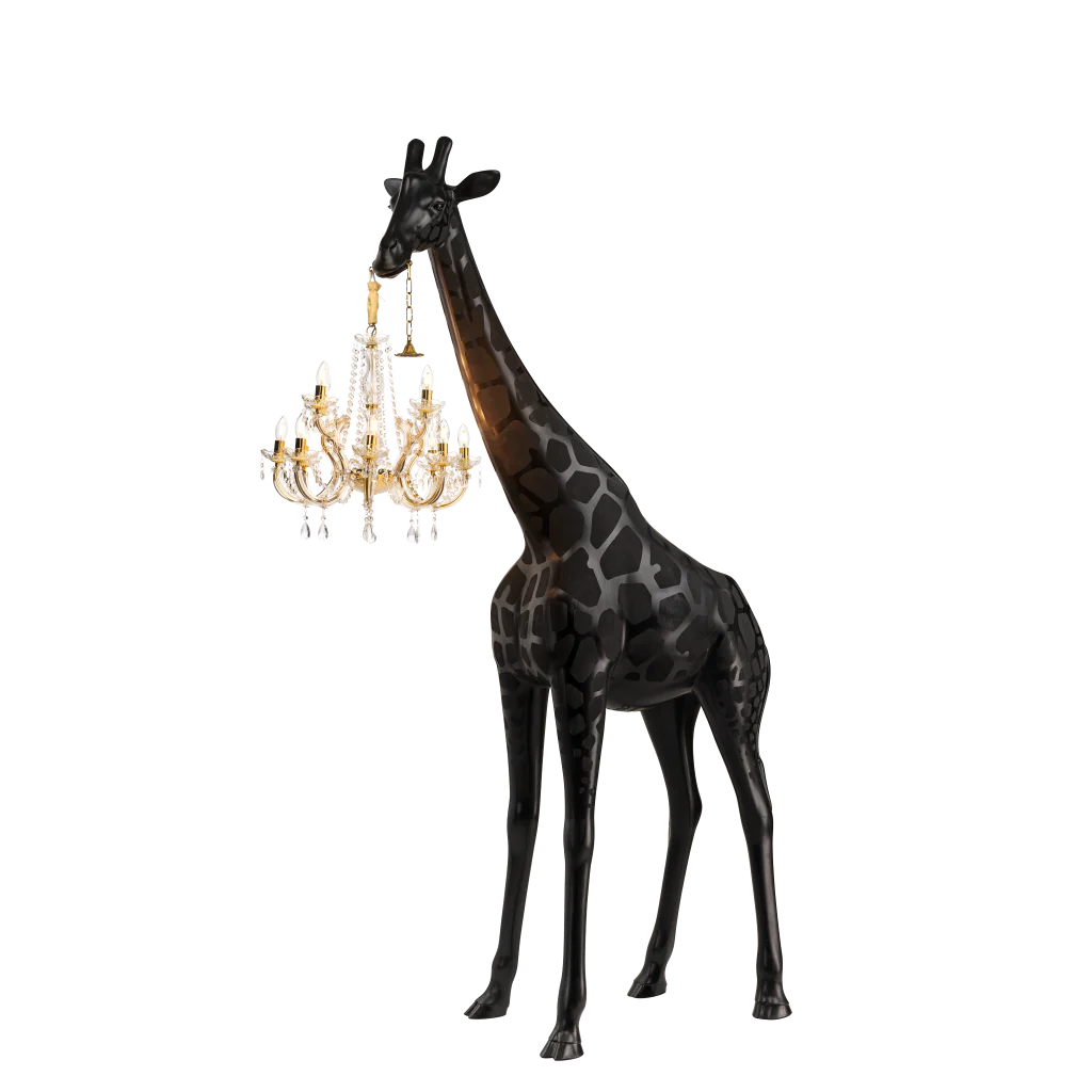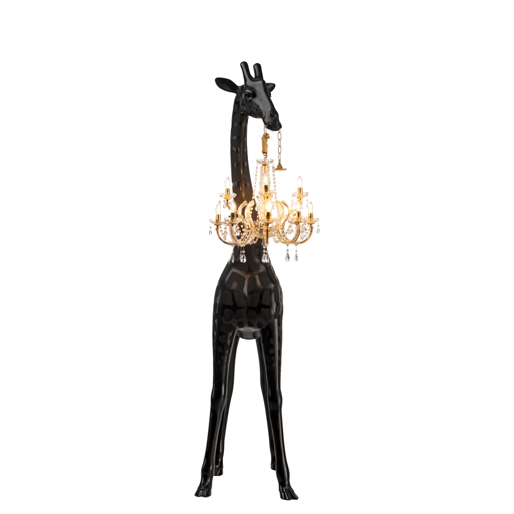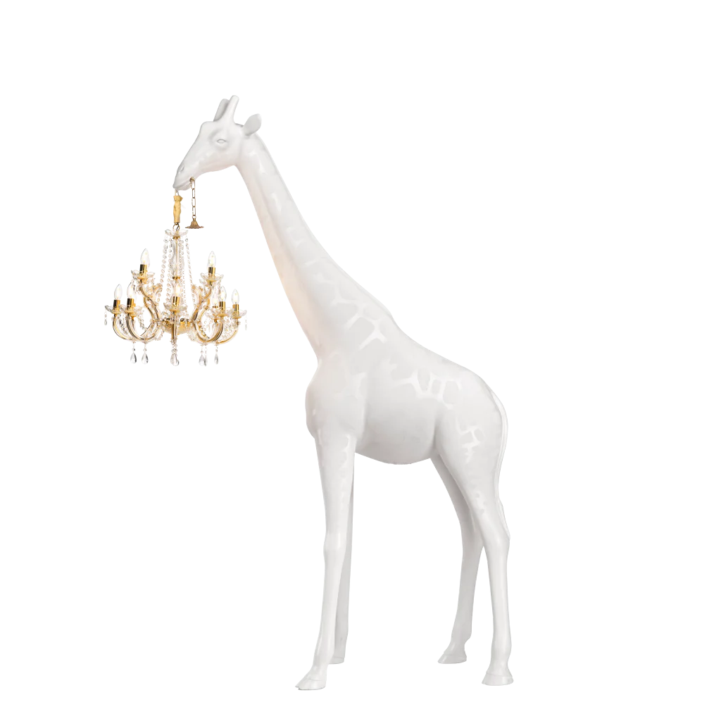 Desenhado por Marcantonio, Giraffe in Love M Indoor é um candeeiro girafa que sustenta um lustre clássico estilo Marie-Thérèse, com 2,65 metros de altura, uma dimensão que lhe permite entrar na casa de todos. Ousada e elegante é naturalmente o centro das atenções em qualquer sala. A nova versão foi atualizada na qualidade da iluminação, adicionando um dimmer para criar a atmosfera certa.