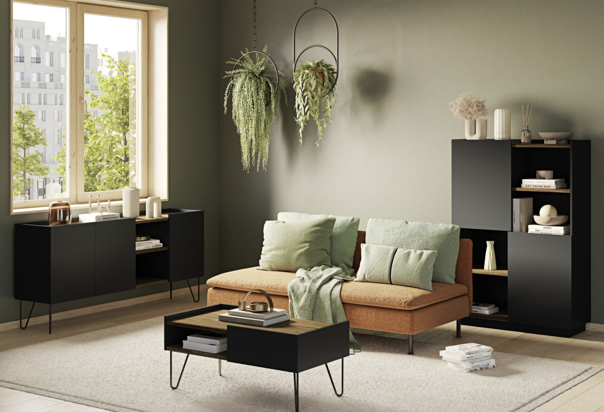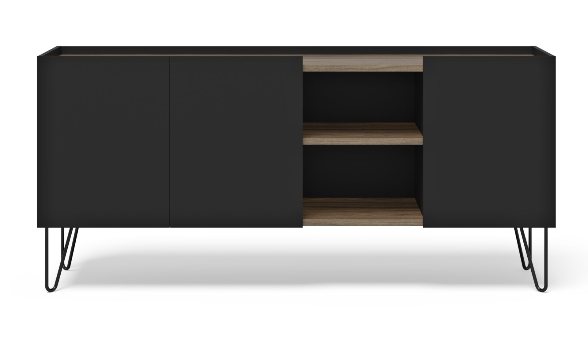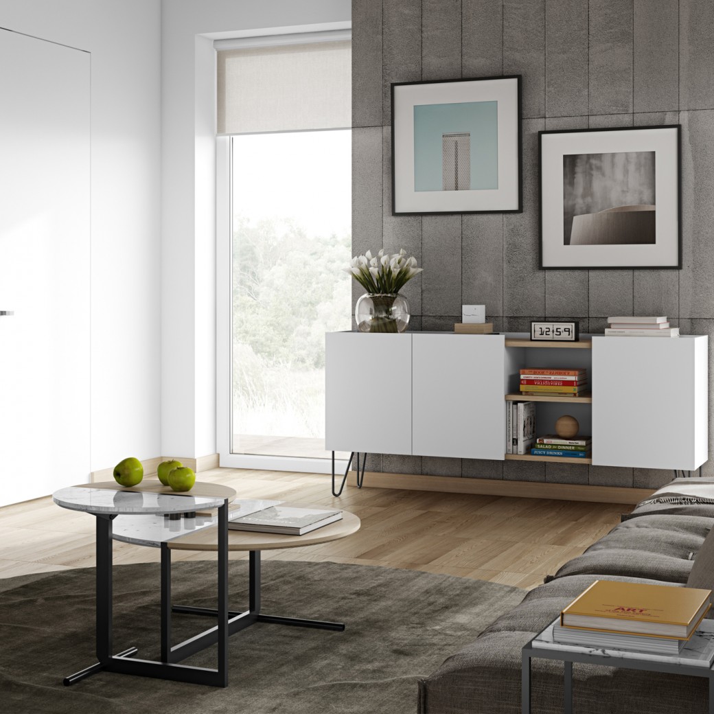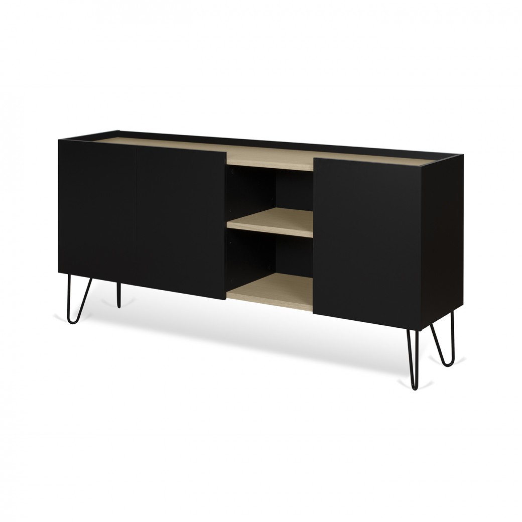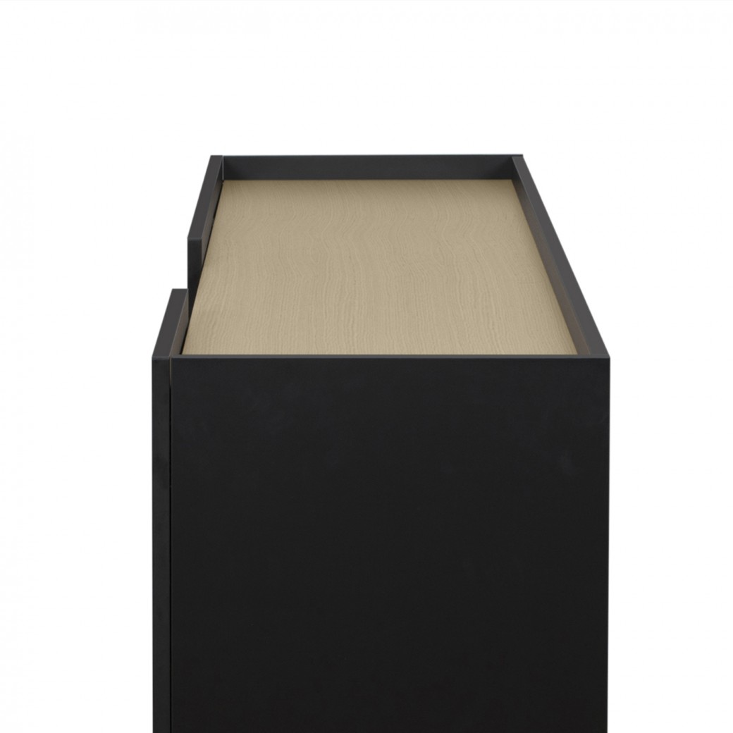 Um aparador muito elegante e funcional e linhas direitas e discretas. Disponível em acabamento negro ou branco.