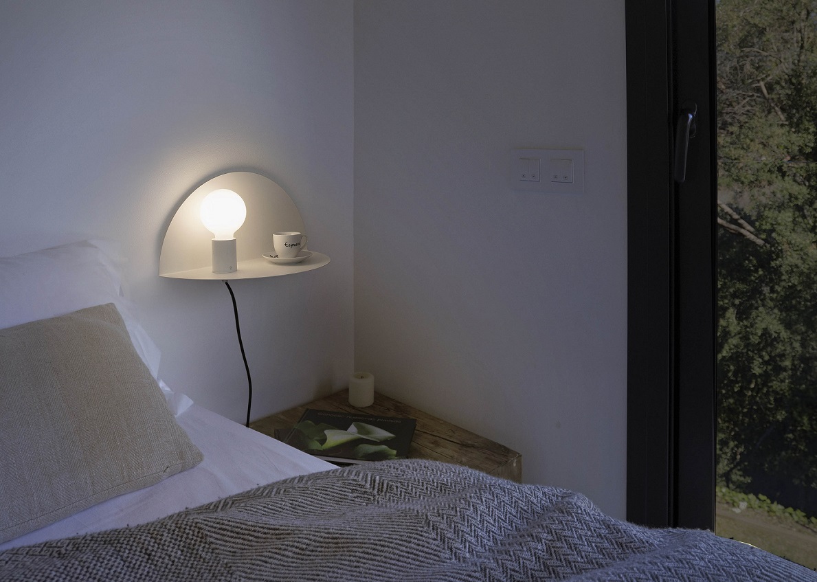 NIT foi criado por Goula Figuera. A sua estrutura é composta por um círculo dobrado. Um lado pode fixá-lo à parede, enquanto o segundo é perfeita para transformar numa simples prateleira. O NIT é a iluminação perfeita para quartos com um toque quente.