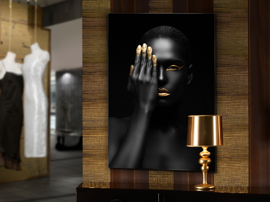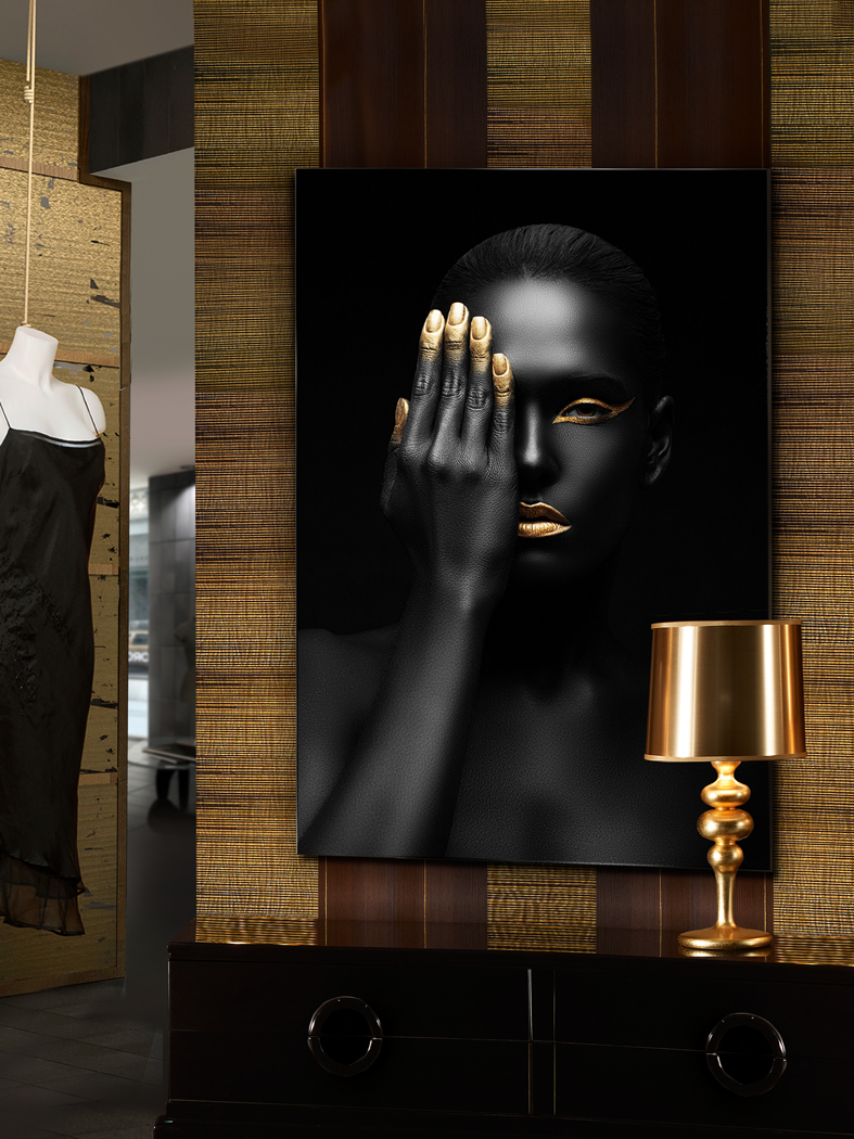 Não conseguimos parar de olhar quando passamos pelo Oronegro: negro, dourado, apelativo e sublime. Esta fotografia impressa é montada em vidro e inclui ferragem para fixação à parede.